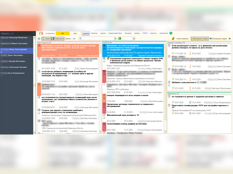 CRM Есенин охватывает всю хозяйственную деятельность организации - от производства до бухгалтерского учёта. Это наш собственный продукт, который мы очень усердно и долго оттачивали вместе с клиентами и который реально отождествлён с бизнесом. Мы им гордимся